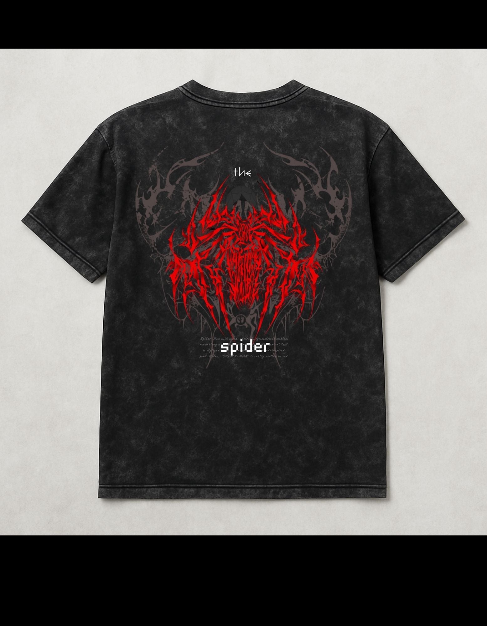 Spider Acid-Wash Oversized T-Shirt Black(240 gsm)